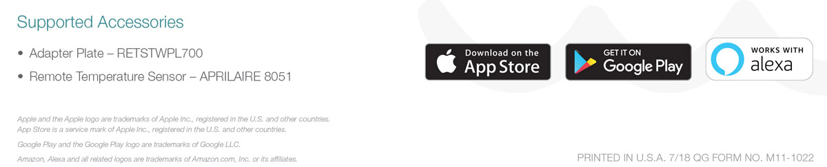 - Works With Alexa - Enables the use of voice commands to control the HVAC system with Amazon Echo or Echo Dot devices